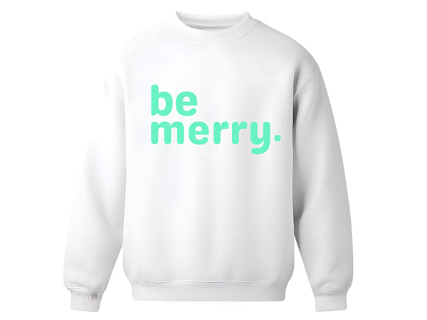 Be Merry Sweatshirt | Unisex White Crewneck, Holiday Cheer